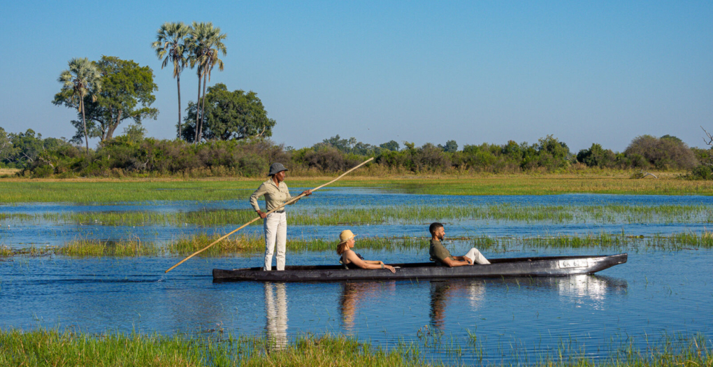Situated within a private concession, the camp offers exceptional opportunities for exploration both on land and on water. Guided game drives reveal the Delta’s remarkable wildlife, including lion, leopard, wild dog, elephant, and an array of antelope species, while walking safaris allow guests to experience the bush from a more intimate perspective. When seasonal floodwaters rise, the waterways come alive with boating and traditional mokoro excursions through crystal-clear channels, offering a unique vantage point on this extraordinary ecosystem.