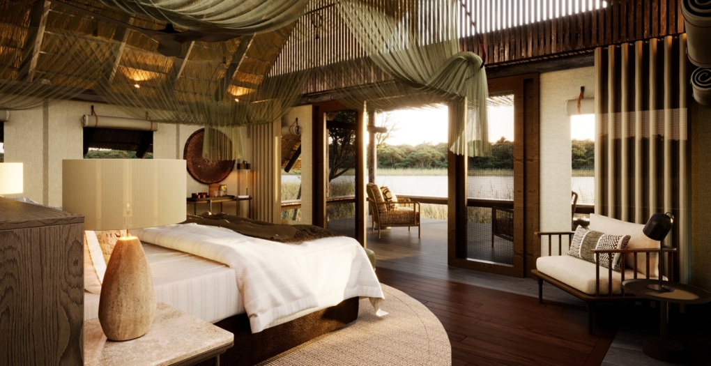 Opening in mid-March 2026, Sediba Sa Rona will feature fourteen luxury tented rooms, one of which will be a two-bedroom family unit. Each room includes an en-suite bathroom and outdoor deck overlooking the river. Nestled beneath a canopy of fig and leadwood trees, the lodge is being built to mingle seamlessly with the surrounding nature, aiming for understated luxury that is attuned to its natural setting.