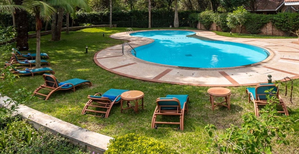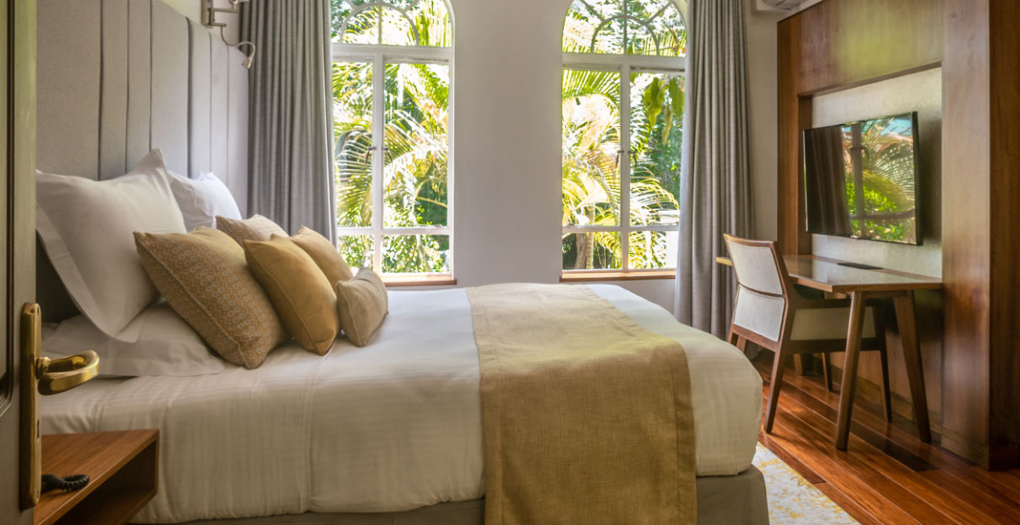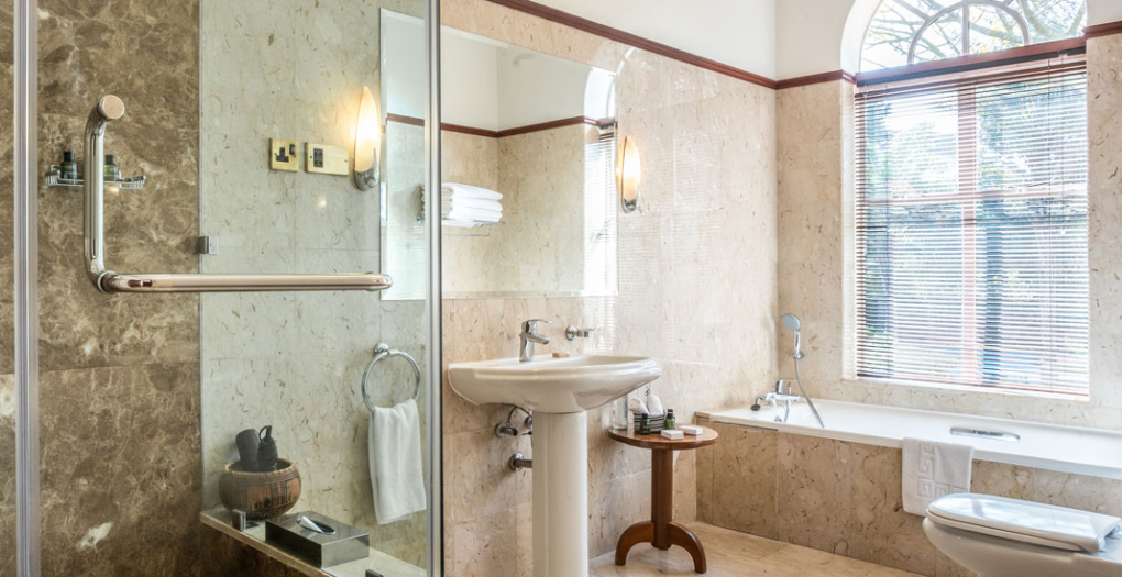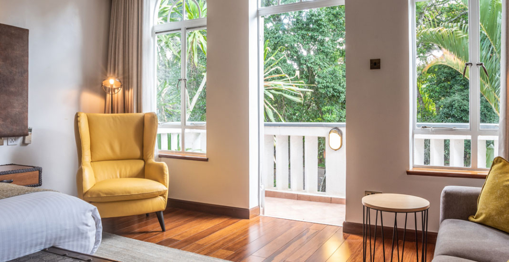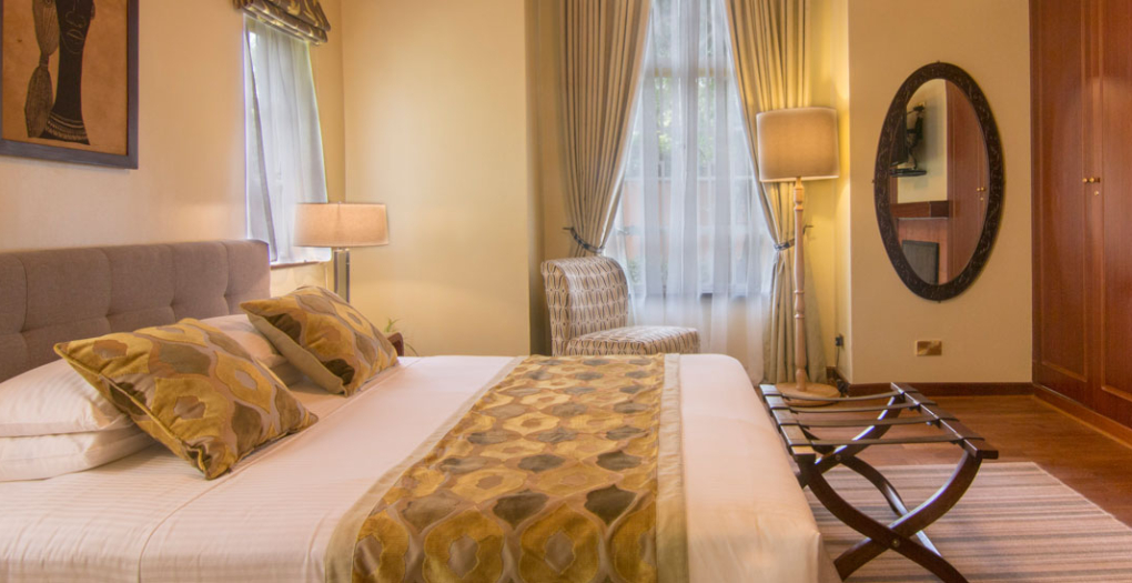 Accommodations at the hotel consist of ten standard rooms and the Malaika Suite. Each room is individually styled and given a name to reflect its unique character. Nine of the rooms can be converted to either single, double, or twin rooms. Most of the marble en suite bathrooms feature a separate shower and bathtub. The air-conditioned rooms also come with a satellite television, coffee/tea facilities, mini safe, mini bar, and hairdryers. The elegant Malaika Suite included two lounge areas, a separate dressing room, a large bathroom with a unique spherical bathtub, and a balcony with a spectacular view of the pool and gardens.