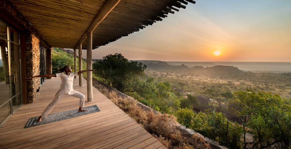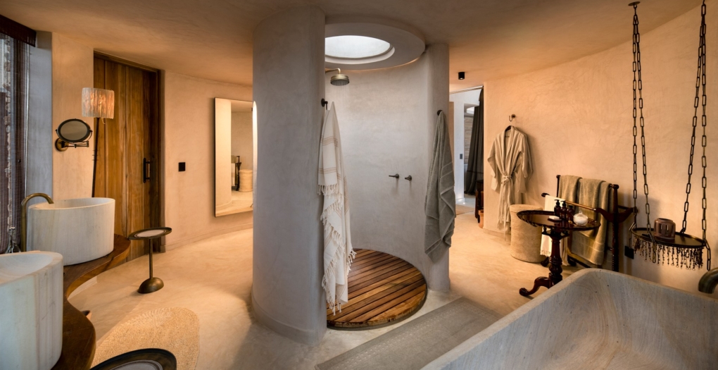 The lodge features a small collection of 14 spacious suites, each thoughtfully positioned to maximise privacy and views. Interiors are warm and organic, with flowing lines, textured finishes, and expansive decks that invite the outdoors in. Private plunge pools and generous indoor-outdoor living spaces allow guests to unwind while immersed in the surrounding landscape, whether watching wildlife pass below or enjoying the changing light across the plains.