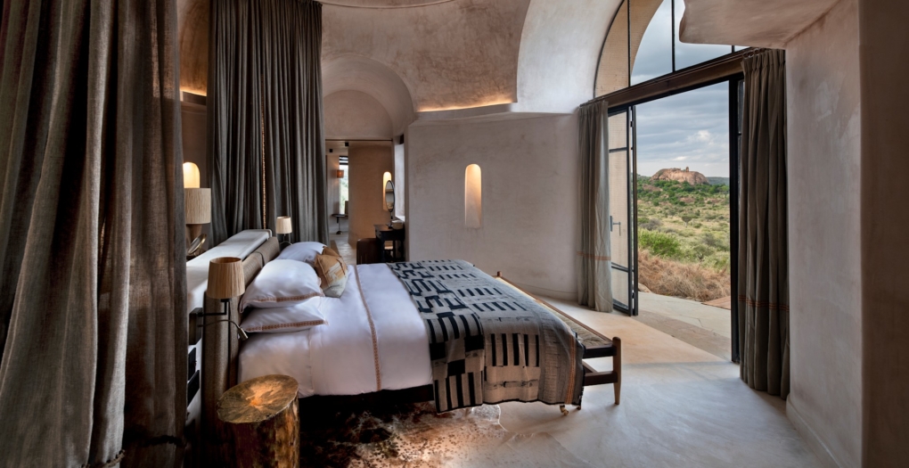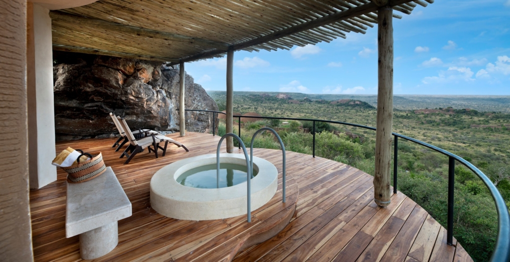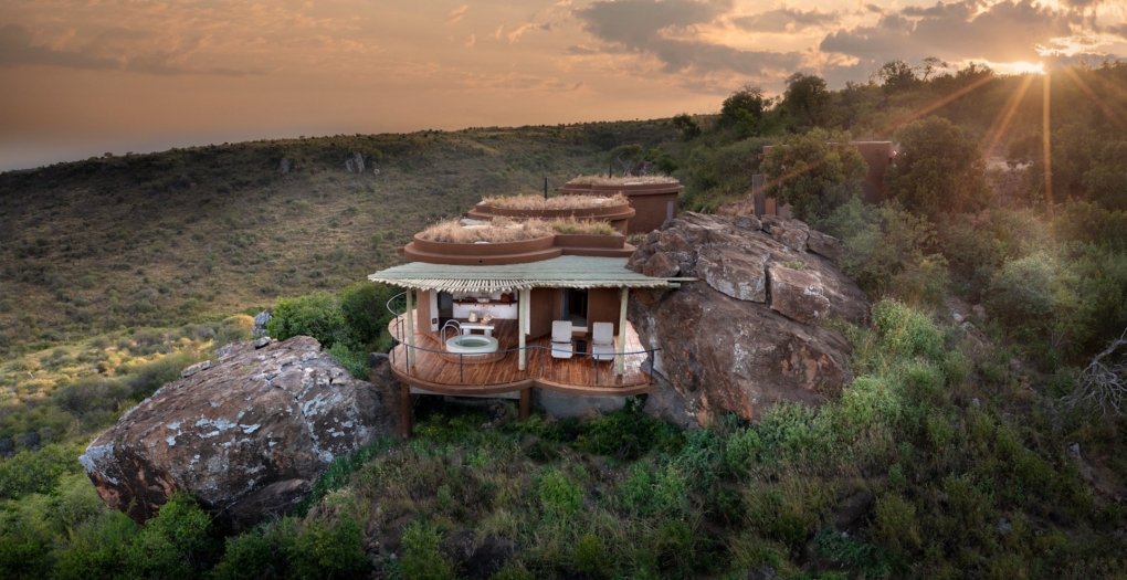 Designed to feel deeply rooted in its environment, the lodge blends sculptural architecture with natural materials, echoing the ancient geology and cultural heritage of the region. Elevated along a granite ridge, it offers sweeping views across the wilderness toward Mount Kenya, creating a powerful sense of space and solitude.